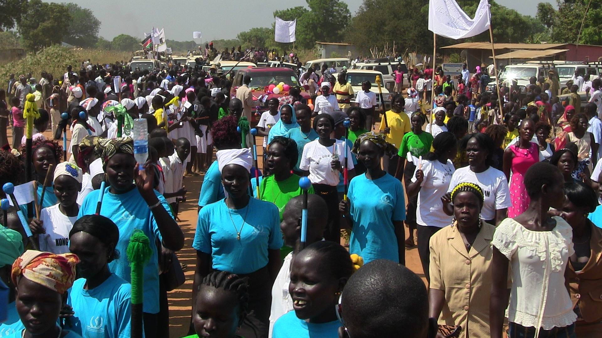 Loluke who was accompanied by former Eastern Equatoria State governor now governor of Namurunyang State, Louse Lobong Lojore was received by thousands of people who gathered and line up up along the road side from Magwi to Torit.