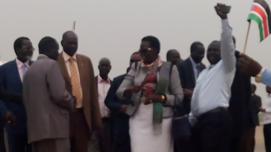 [Juba, South Sudan, TCT] A widow of the late Dr. John Garang De Mabior, commonly known as Mama Rebecca Nyandeng, arrived in South Sudan on Friday morning for hope to give peace a boost.